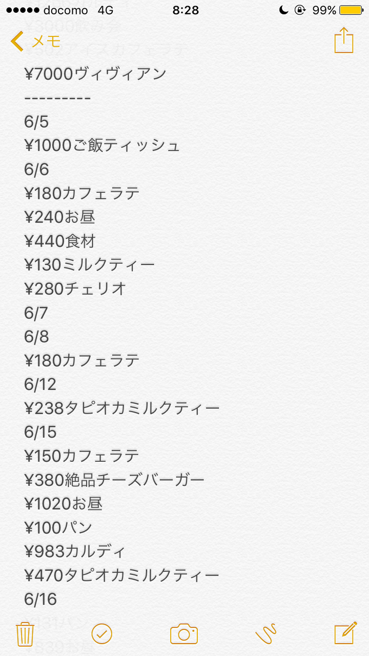 しかし、しかし、気分はどうにも出来なくても、0か100かの変な完璧主義はどうにでもなると思い、喧嘩が落ち着いた後にまた家計簿を再スタートしてみた。