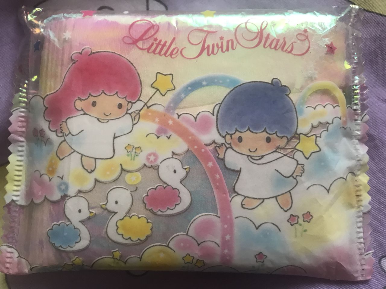 子供の頃からこのキキララのポケットティッシュが大好きで、今はもう廃盤のこのポケットティッシュ。